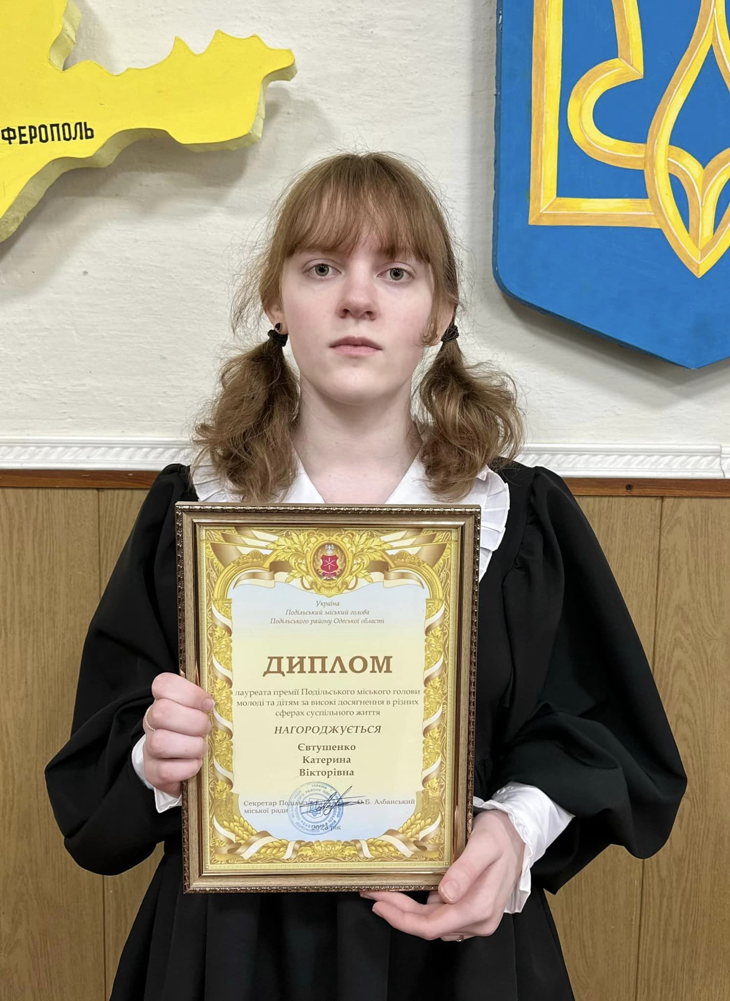 Серед учнів ліцею №4 Подільської міської ради є лауреат премії Подільського міського голови – Євтушенко Катерина, яку 28 грудня було нагороджено дипломом за високі...